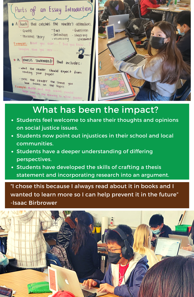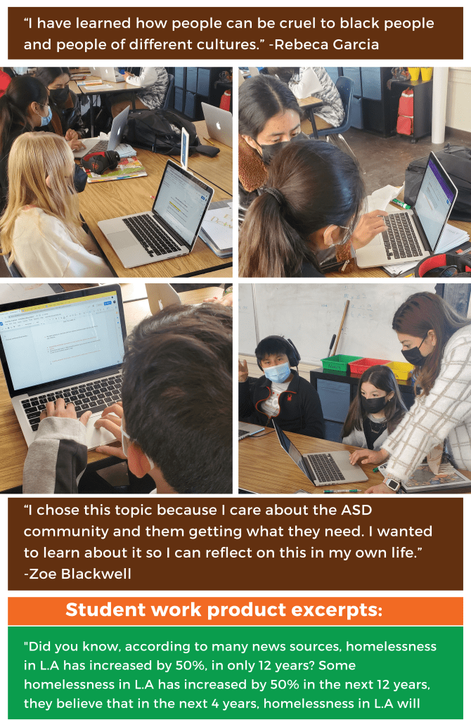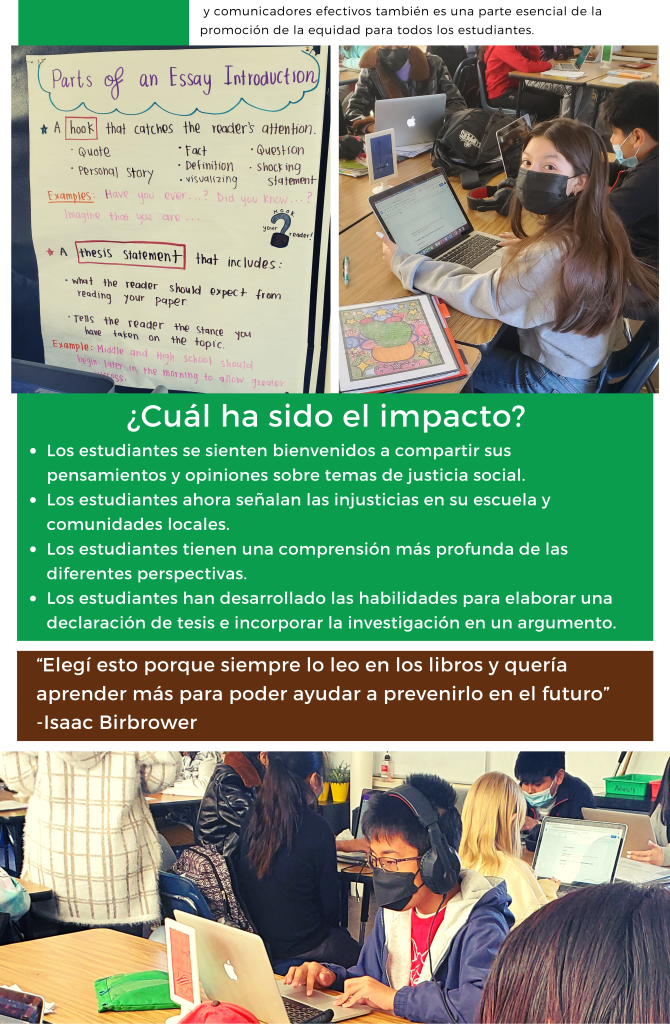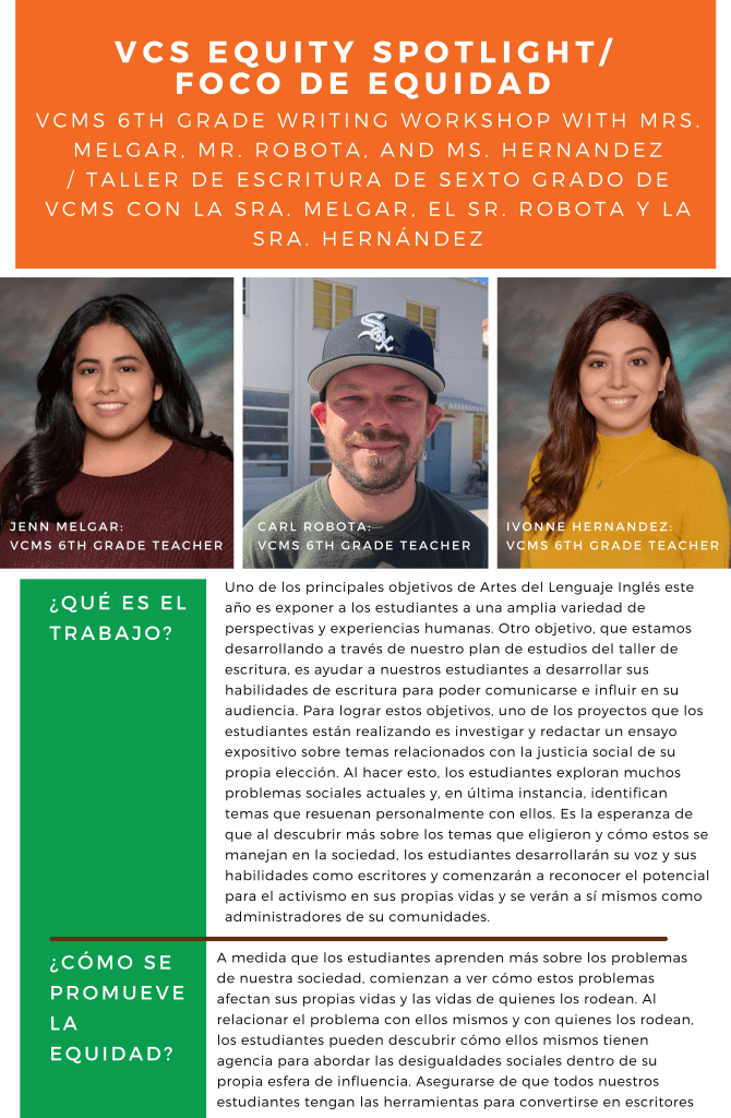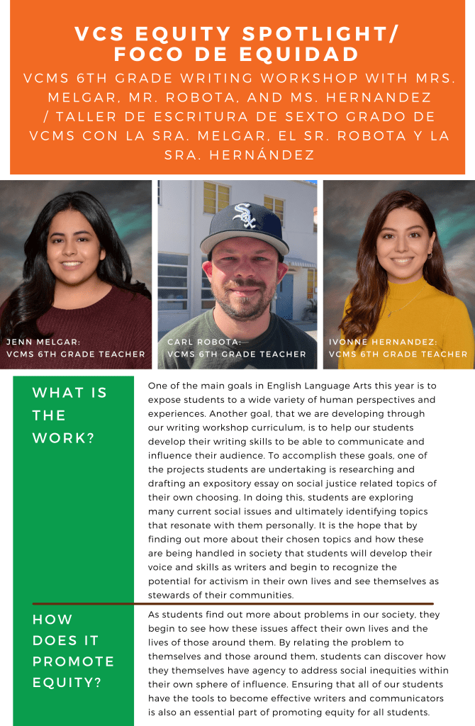 Equity Spotlight 3/22: Valley Charter Middle School 6th grade Writing Workshop Posted byrebsaveryMarch 3, 2022November 27, 2022Posted inEquity Spotlight Foco de equidad 3/22: Taller de escritura de sexto grado de Valley Charter Middle School Share this: Share on X (Opens in new window) X Share on Facebook (Opens in new window) Facebook Like Loading... Related